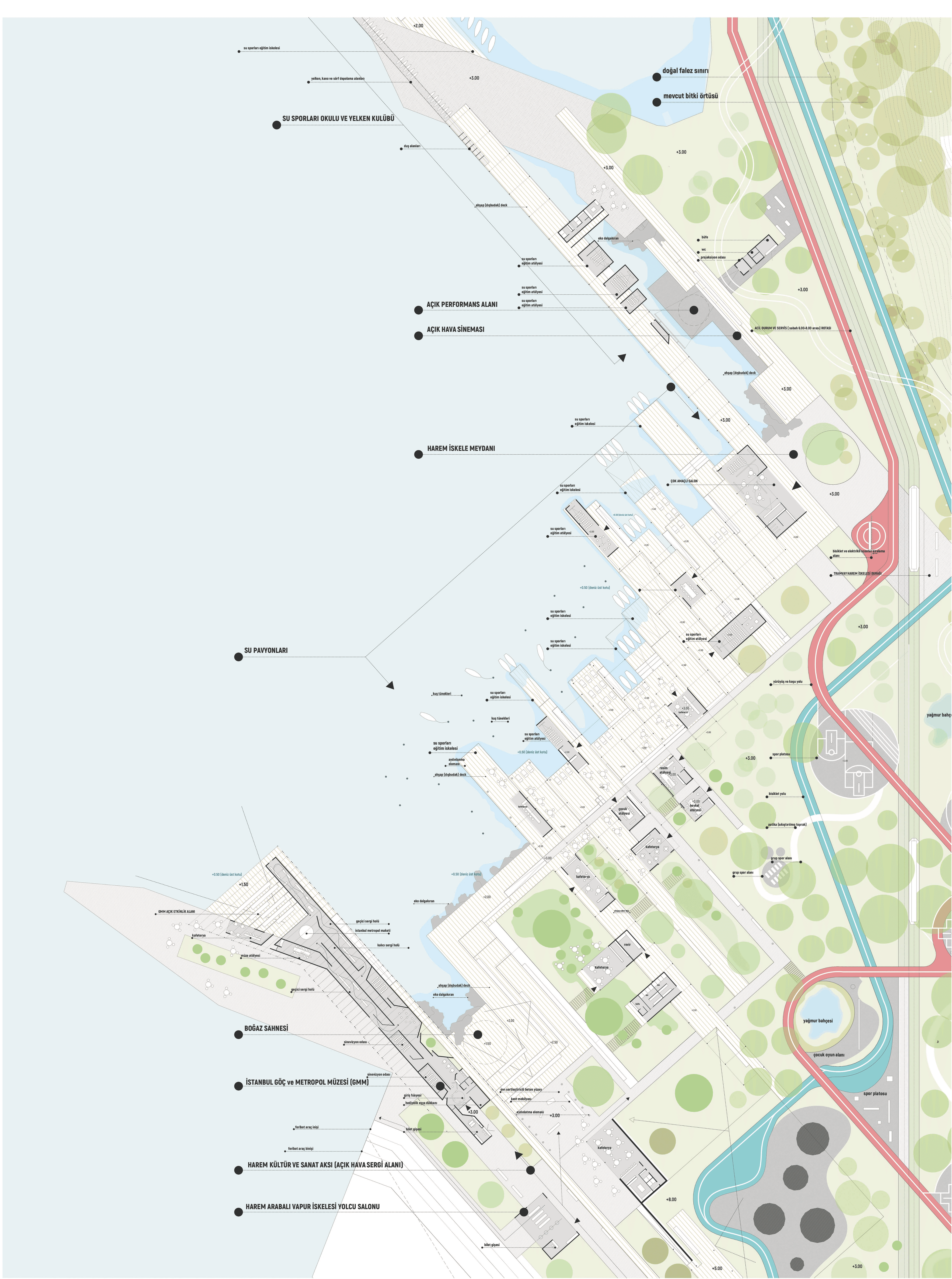 Salacak Urban Park is a coastal urban design proposal for one of Istanbul’s most historic waterfronts in Üsküdar. The project reconnects the city with the sea by reactivating fragmented coastal nodes, strengthening landscape continuity, and transforming the shoreline from a traffic-dominated transfer surface into an accessible public park shaped by topography, ecology, and year-round urban life. The proposal received the Equivalent First Prize in the Salacak Coast Design Competition.